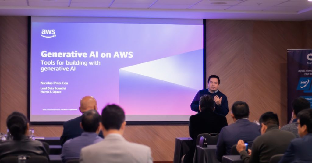 Durante el encuentro, los participantes tuvieron la oportunidad de hacer un abordaje teórico práctico de los conceptos y soluciones que ha desarrollado AWS en esta materia, así lo informó Nicolás Pino, Data Scientist de Morris&Opazo, quien además, destacó la transversalidad de este tipo de tecnología y cómo puede generar valor en los diferentes procesos del negocio, debido al cambio de paradigma del uso de modelos de IA, sin la necesidad de tener datos etiquetados e incluso datos no estructurados.